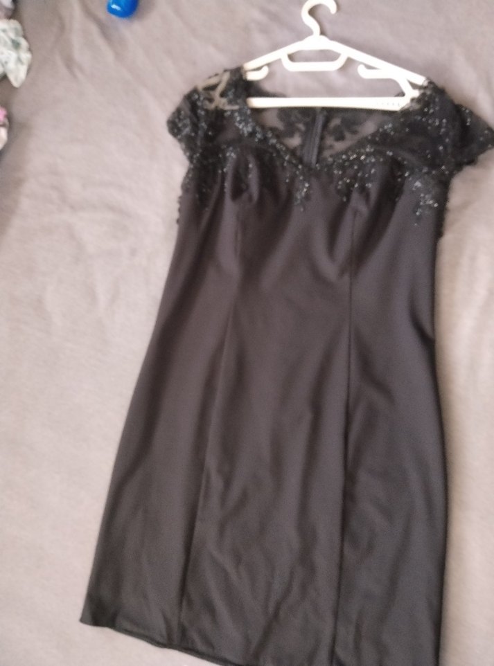Siyah midi klasik gotik elbise, V yakalı, kolsuz ve drapeli. Üst kısmında zarif süslemeler bulunur, parti için uygundur. 1 kere giyildi