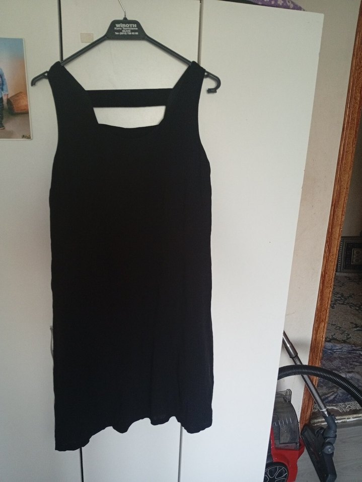 Siyah V Yaka Midi Kolsuz Kadın elbise