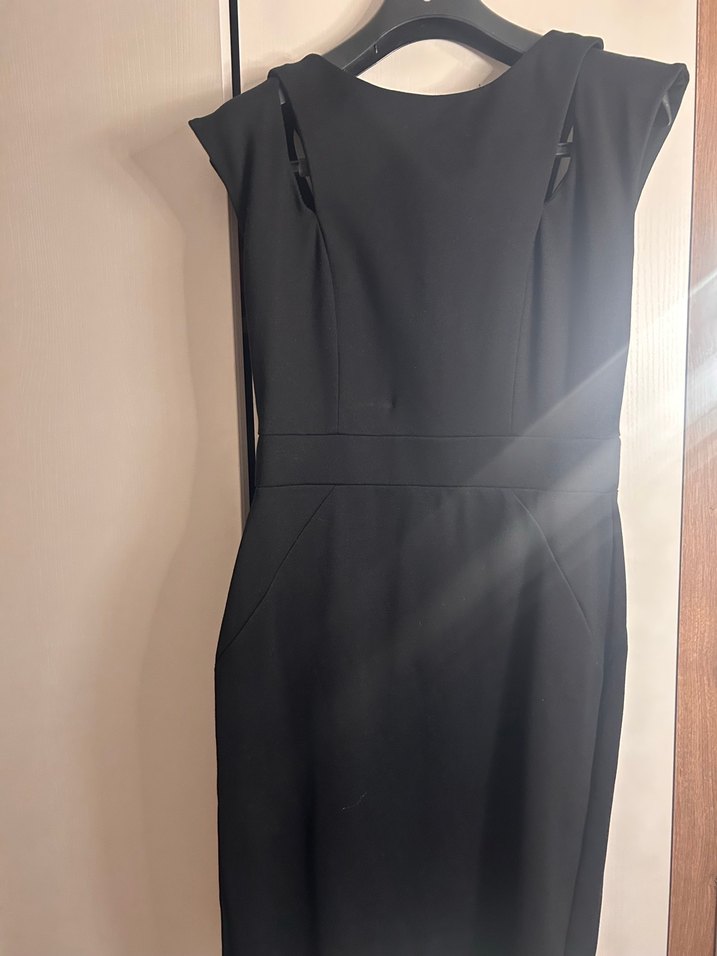 V yaka, kolsuz, yırtmaçlı siyah midi elbise, ofis için gotik ve şık tarzı bir araya getiriyor.