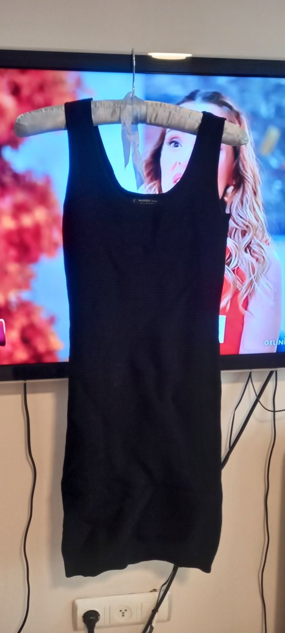 Siyah, kolsuz midi elbise, v yaka ve vücuda oturan kesime sahip. Sentetik kumaştan, sokak stiline uygun ve günlük kullanıma uygun şık bir tasarım.