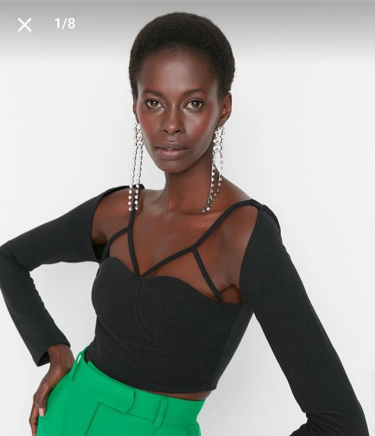 Siyah, V yakalı, askılı kısa mini bluz.