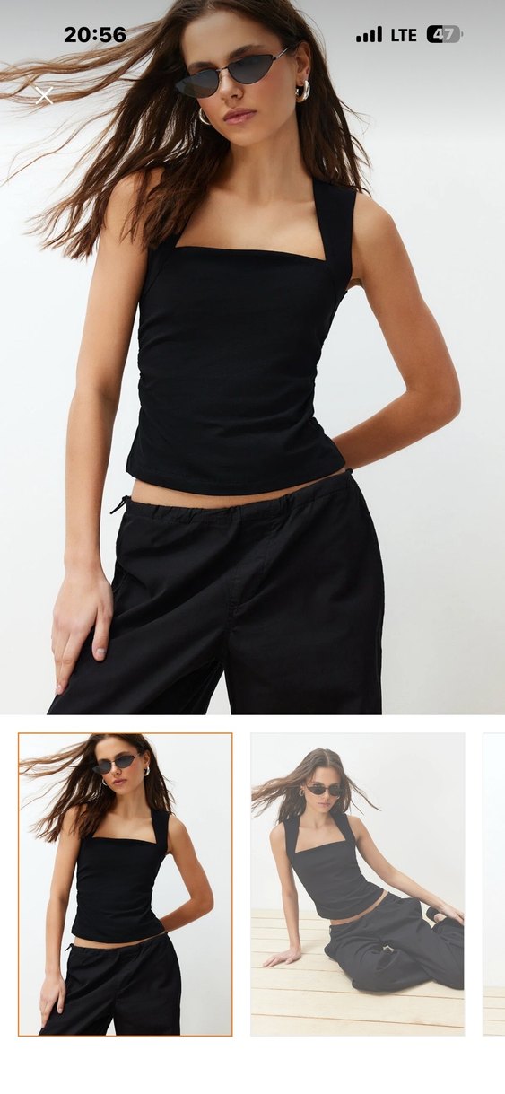 Saten kumaştan, v yaka ve kolsuz, kısa boy siyah dar kesim bluz. Günlük kullanıma uygun, zahmetsiz şıklık sunar. Tertemiz iki kere kullanıldı