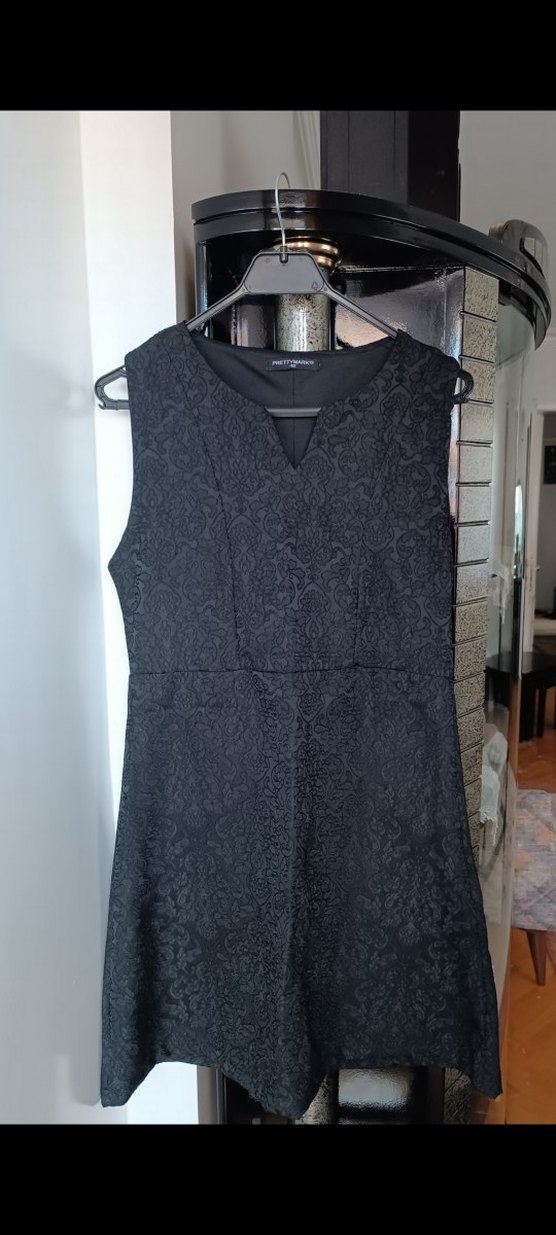 Siyah mini elbise, kolsuz ve V yakalıdır. Drapeli detayları ve regular kesimiyle ofis için uygundur.