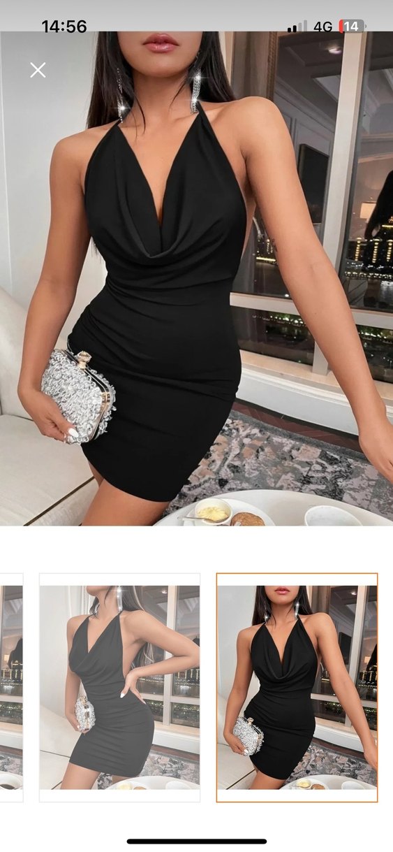 V yaka ve kolsuz tasarıma sahip, payet detaylı siyah mini abiye elbise. Parti için uygun, modern ve iddialı şıklık sunar. ✨