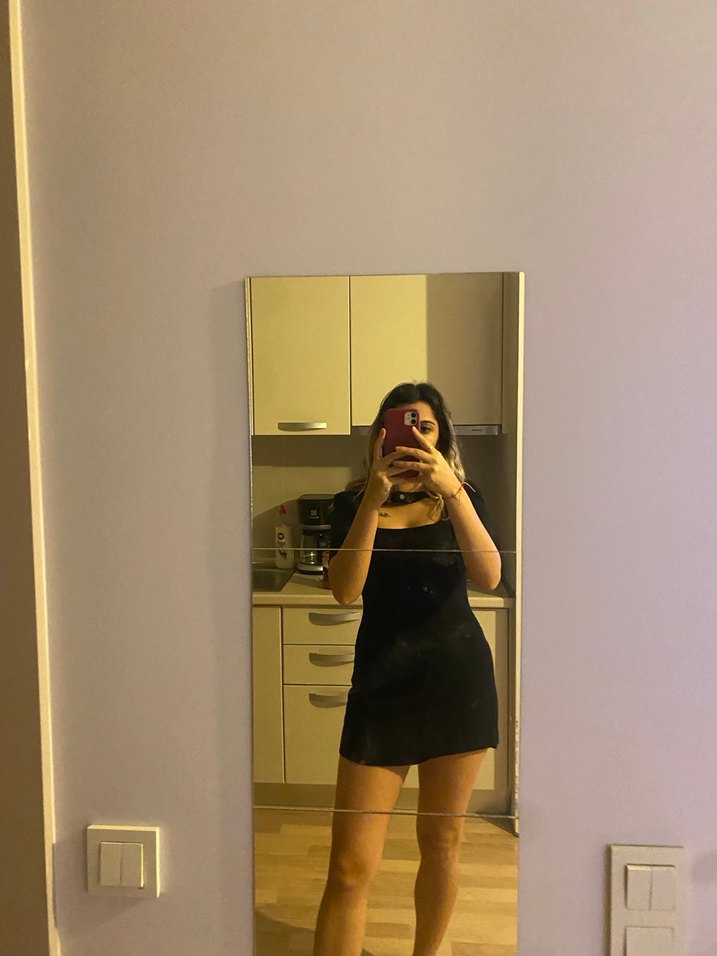 V yaka ve ince askılı, şeffaf detaylı siyah mini elbise. Minimalist ve cesur normcore tarzıyla romantik buluşmalar için uygun.