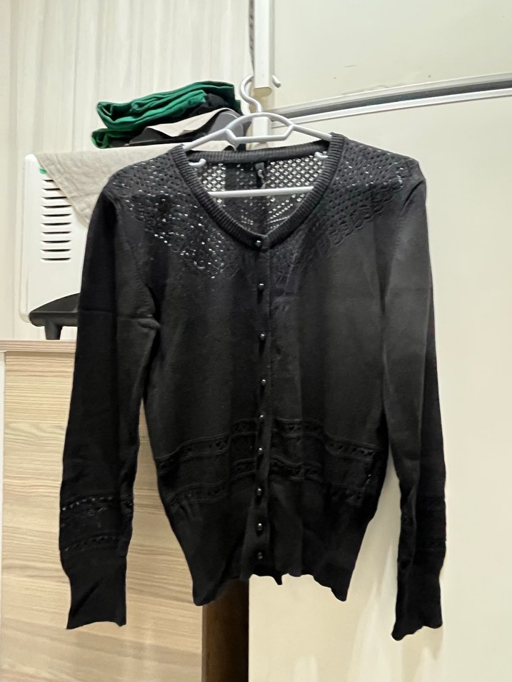 Siyah örgü, v yaka, ince kesim, uzun kollu midi hırka. Günlük kullanıma uygun sade ve gotik tarzda.