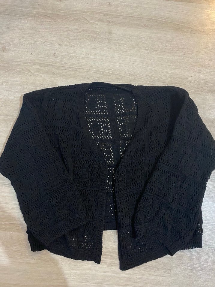 Siyah renkli, V yaka, uzun kollu, gevşek kesim ve midi boy örgü kadın hırka. Bohem ve gotik tarz için uygundur, günlük kullanıma uygundur.