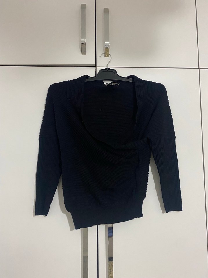 Siyah V Yaka Örgü Kadın Kazak