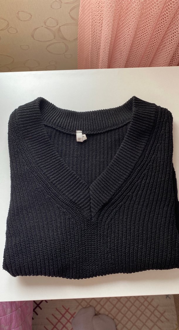 Siyah, V yakalı kadın süveter, yumuşak örgü kumaştan yapılmıştır. Salaş kesimi ve midi boyu ile günlük kullanıma uygundur.