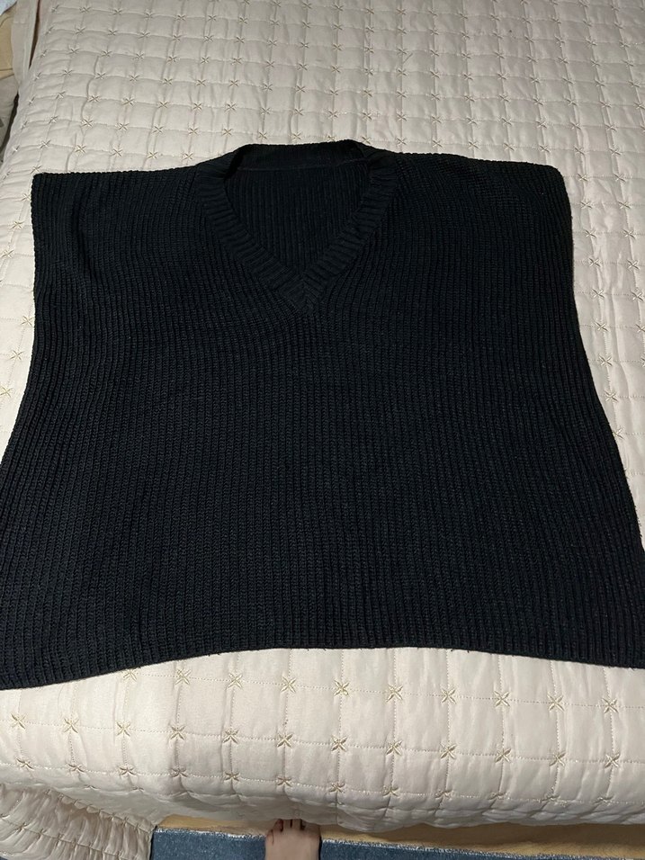 Siyah renkli, V yaka örgü kadın süveter, rahat kesimiyle günlük kullanıma uygundur.