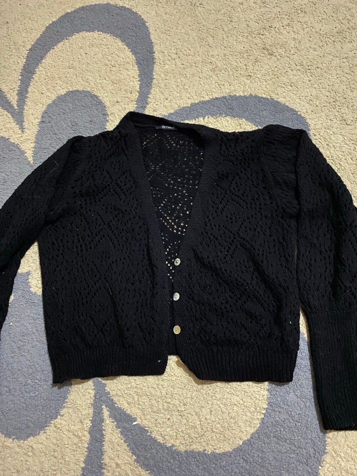 Bu siyah örgü hırka, V yaka ve uzun kollu olup, bol kesim ve midi boydadır. Desensiz tasarımıyla gotik ve rahat bir stil sunar, günlük kullanıma uygundur.