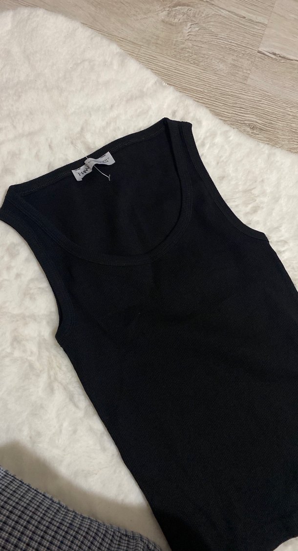 Pamuklu, V yaka ve kolsuz tasarıma sahip siyah, vücuda oturan kadın atlet. Günlük kullanım için rahat ve sade bir modeldir.