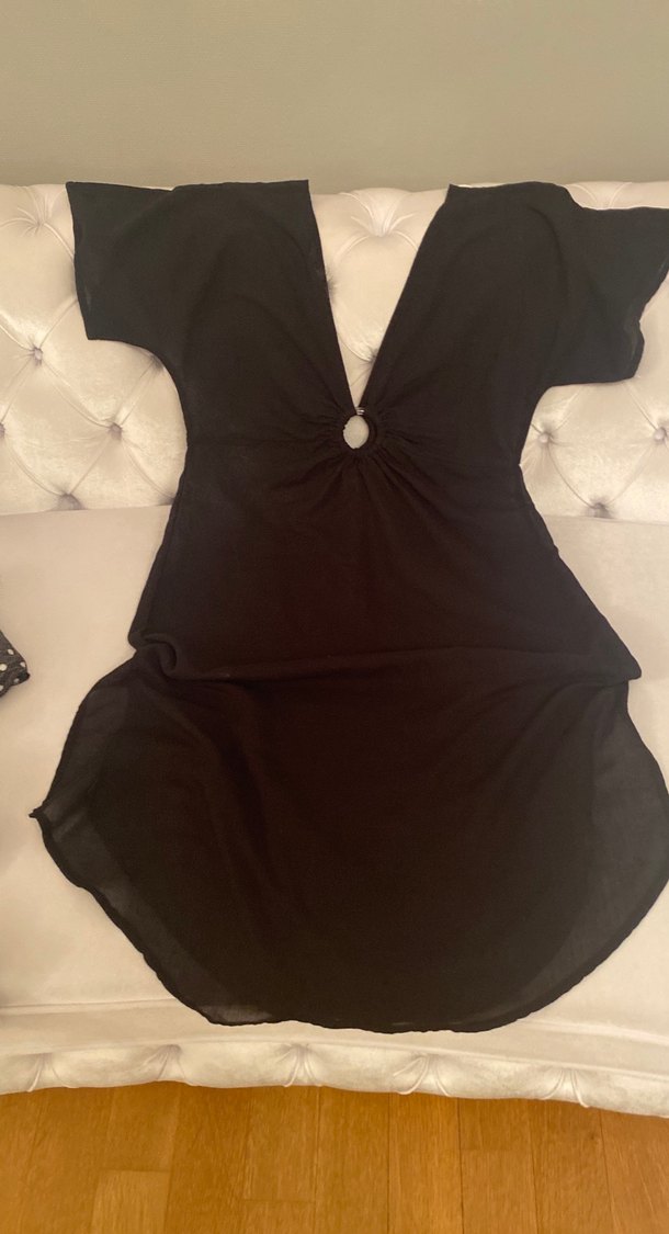 Siyah, V yakalı, pareo elbise