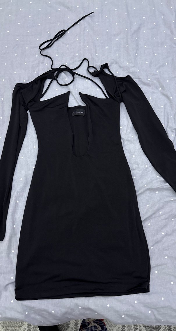 Siyah V Yaka Strappy Gotik Midi Elbiseler