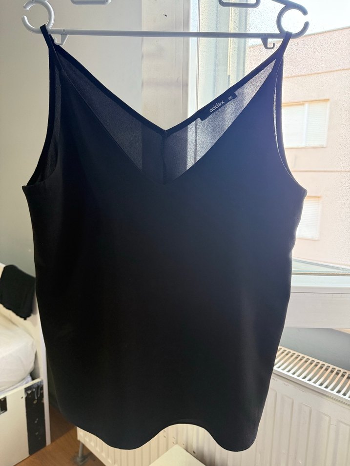 Siyah, V yaka ve transparan detaylı kadın atlet. Sentetik kumaştan, bol kesim ve günlük kullanım için uygundur.
