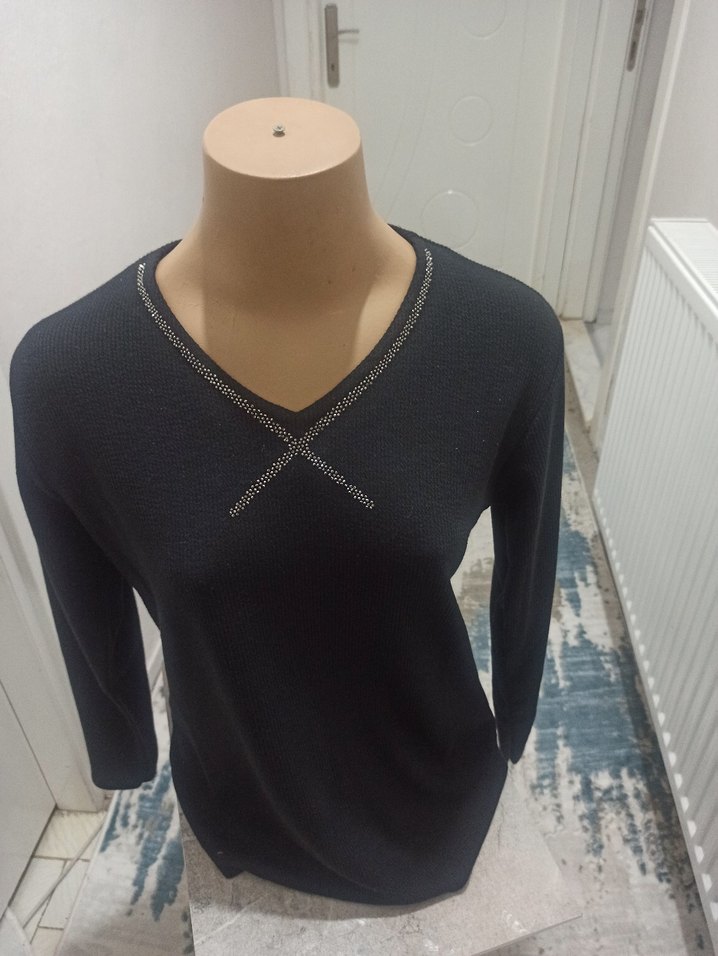 Siyah renkte, V yaka ve uzun kollu, triko dokulu kadın kazak. Normal kesim ve midi boyda, günlük kullanıma uygundur. sıfır ürün etiketli ihtiyaç fazlası satılıktır aynı gün kargoya verilir makul tekliflere acigim