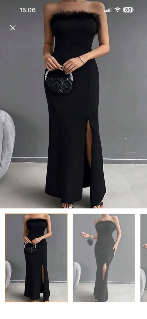 Siyah, uzun ve v yaka olan bu dar kesim elbise, drapeli tasarımı ve ince askıları ile minimalist gotik tarz sunar. Yumuşak sentetik kumaştan üretilmiştir ve romantik buluşmalar için uygundur.