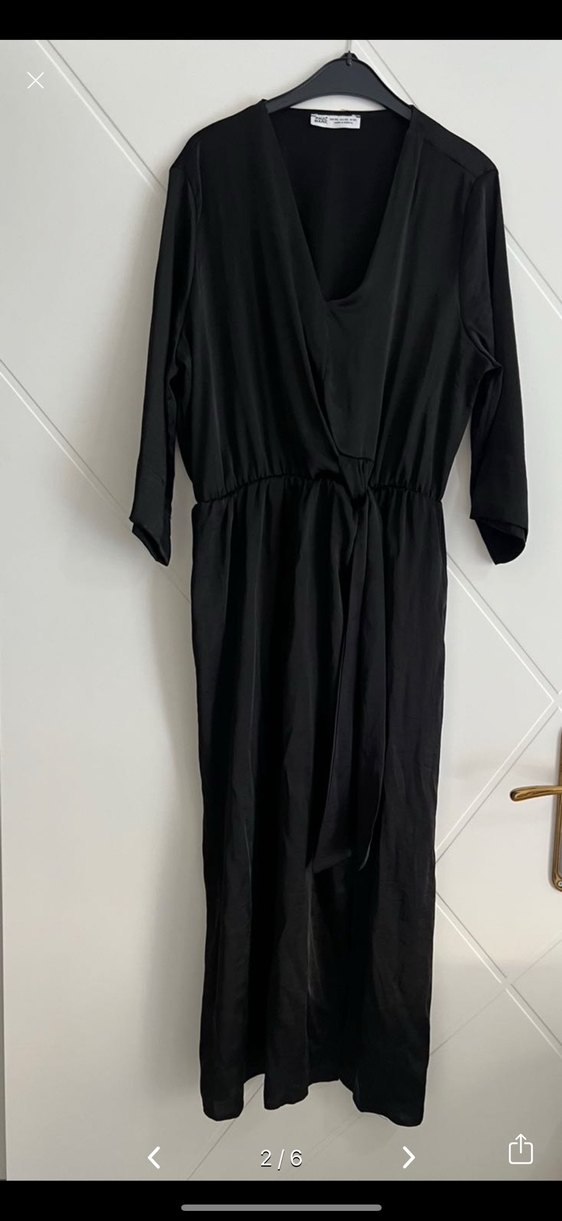 Siyah uzun elbise, günlük ve şık kullanım için uygundur.