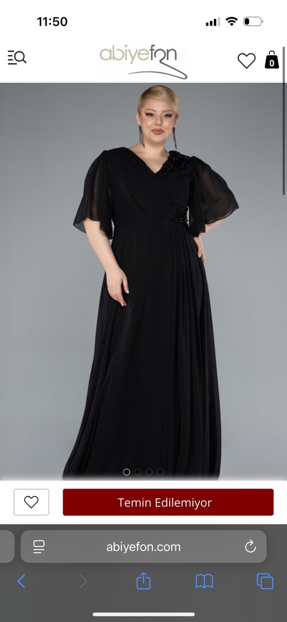 Siyah uzun abiye elbise, bol kesim ve drapeli detaylara sahiptir. V yakalı, kısa kollu ve gotik tarzda, düğün için uygundur. Abiyefondan alındı bir kez annem düğünümde giydi 46 bedendir