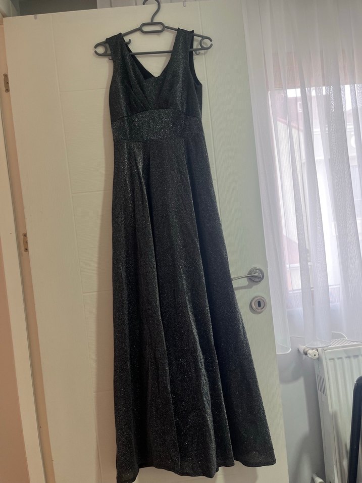 Siyah V Yaka Uzun Gotik Abiye Elbise