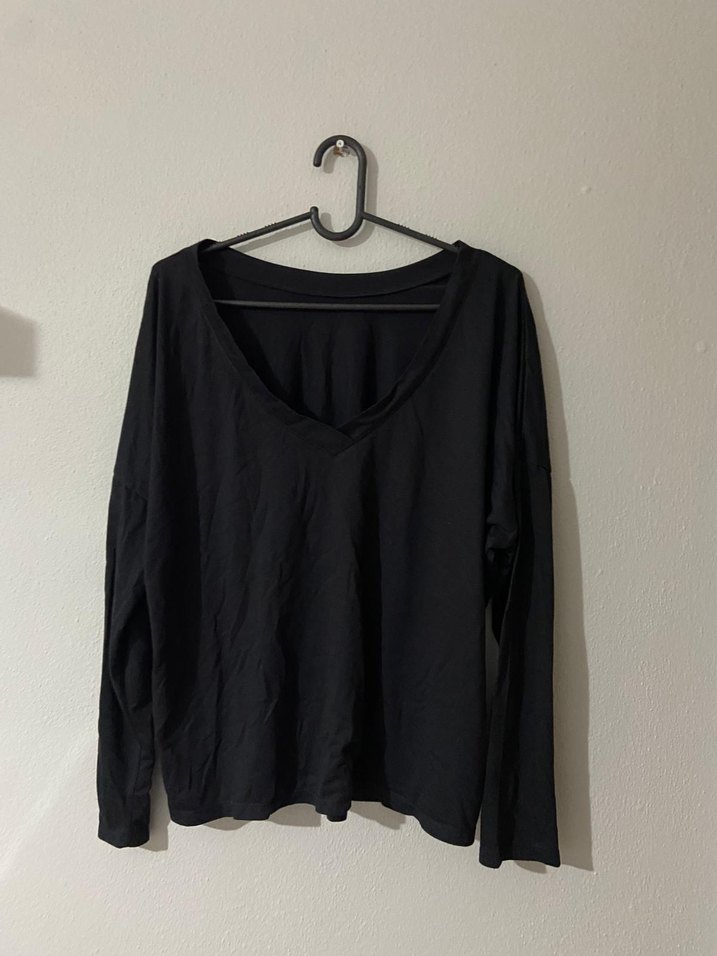Siyah V Yaka Uzun Kollu Basic Bluz