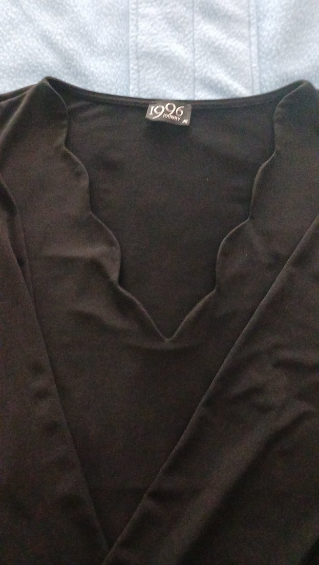 Siyah kumaştan, V yaka ve uzun kollu, vücuda oturan bayan bluzu, günlük kullanım için uygundur.