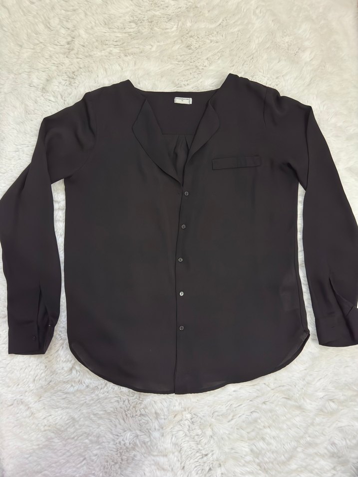 Siyah renkli, uzun kollu, İnce tül kumaş, V yaka ve düğmeli kadın gömleği. Rahat kesimli ve yumuşak dokuda. Fiyat teklifine açığım. Üniversite öğrencisi olduğum için hafta içi evimde değilim; bu yüzden siparişlerinizi sadece Cumartesi günleri kargoya verebiliyorum. Sabrınız, desteğiniz ve anlayışınız için şimdiden çok teşekkürler! Keyifli alışverişler dilerim. ❤️