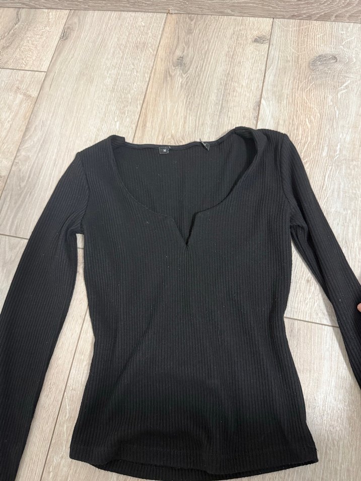 Siyah V Yaka Uzun Kollu Kadın Bluz