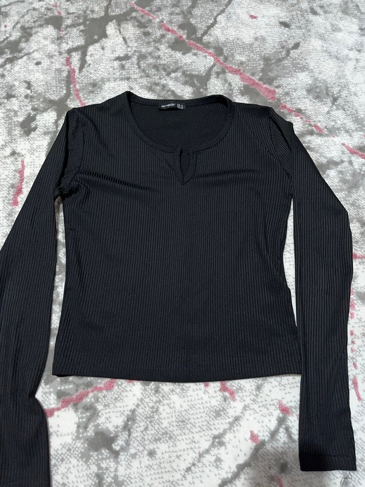 Siyah V Yaka Uzun Kollu Kadın Bluz