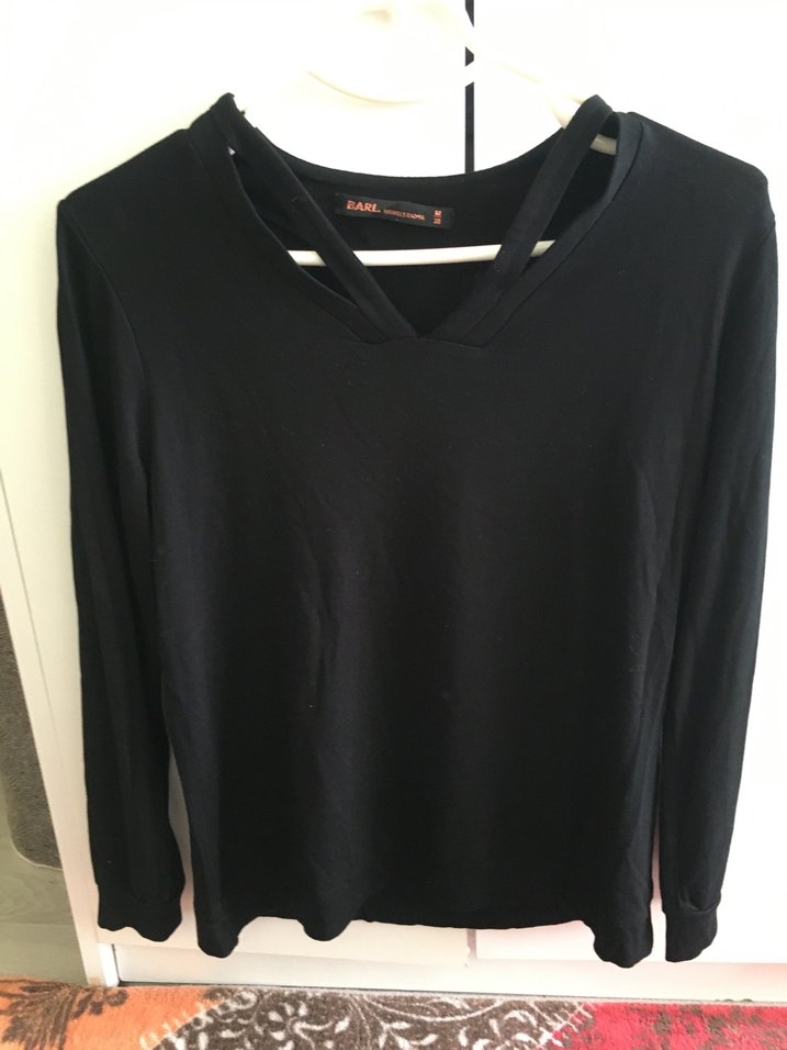 Siyah V Yaka Uzun Kollu Kadın Bluz