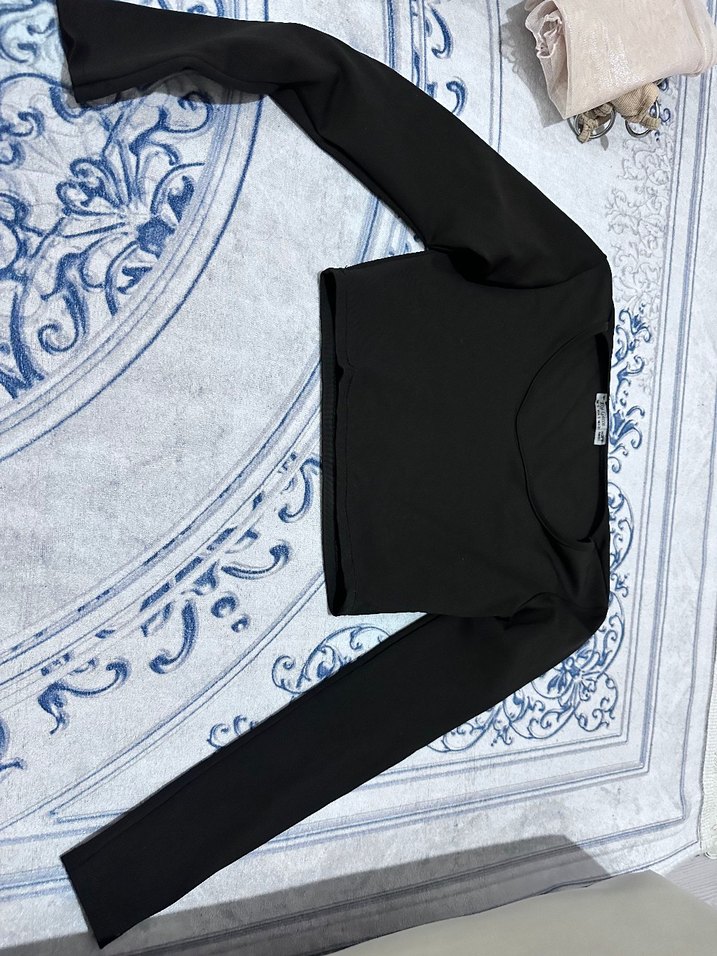 Siyah, uzun kollu, V yakalı ve vücuda oturan bu bluz. S-M Beden