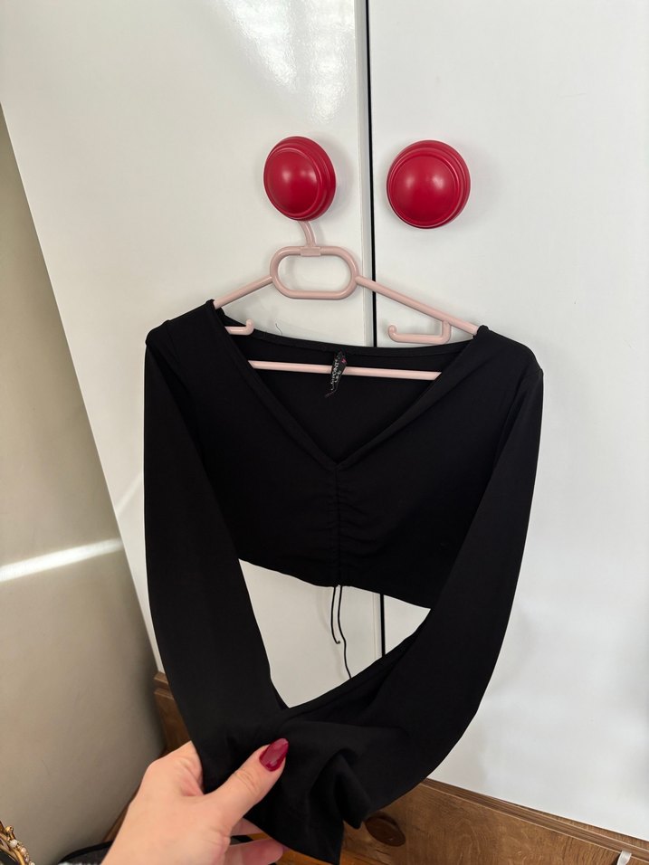 Siyah V Yaka Uzun Kollu Kadın crop