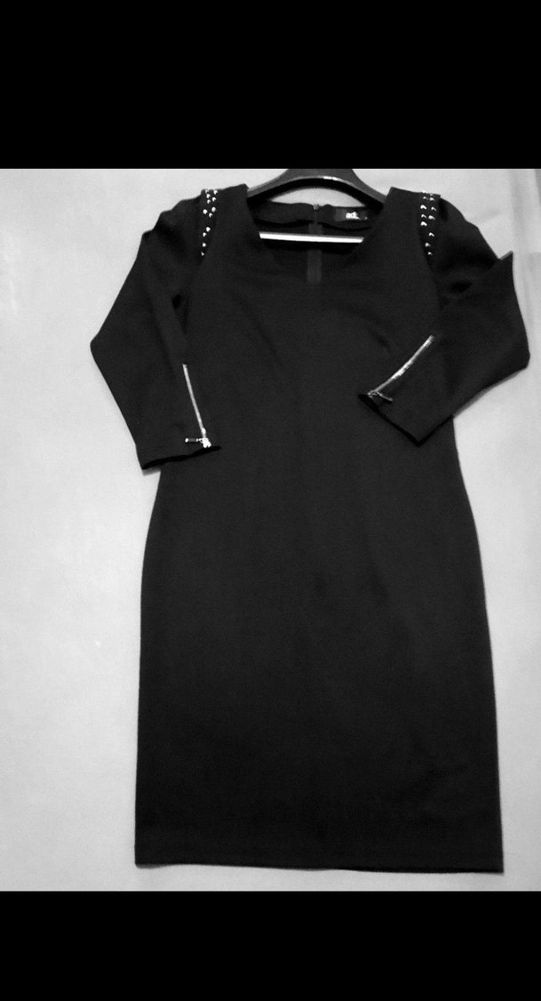 Siyah, uzun kollu, V yaka ve fermuarlı detaylara sahip bu dar kesim kadın elbisesi iş ortamları için uygundur. Desensiz ve şık tasarımıyla öne çıkar.
