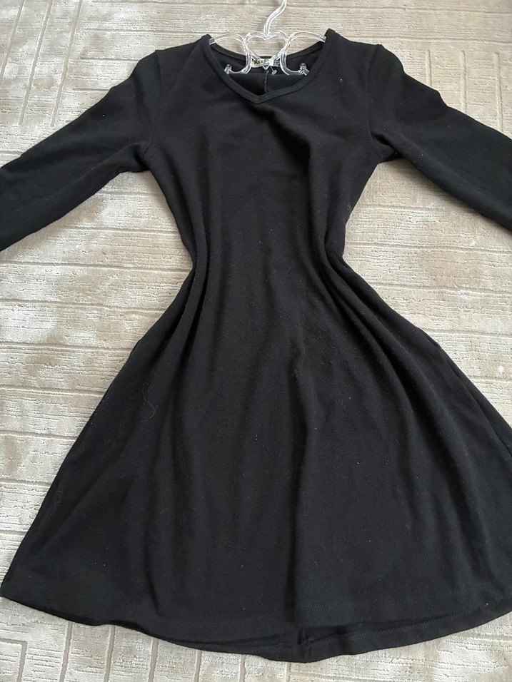 Siyah V Yaka Uzun Kollu Midi Elbise