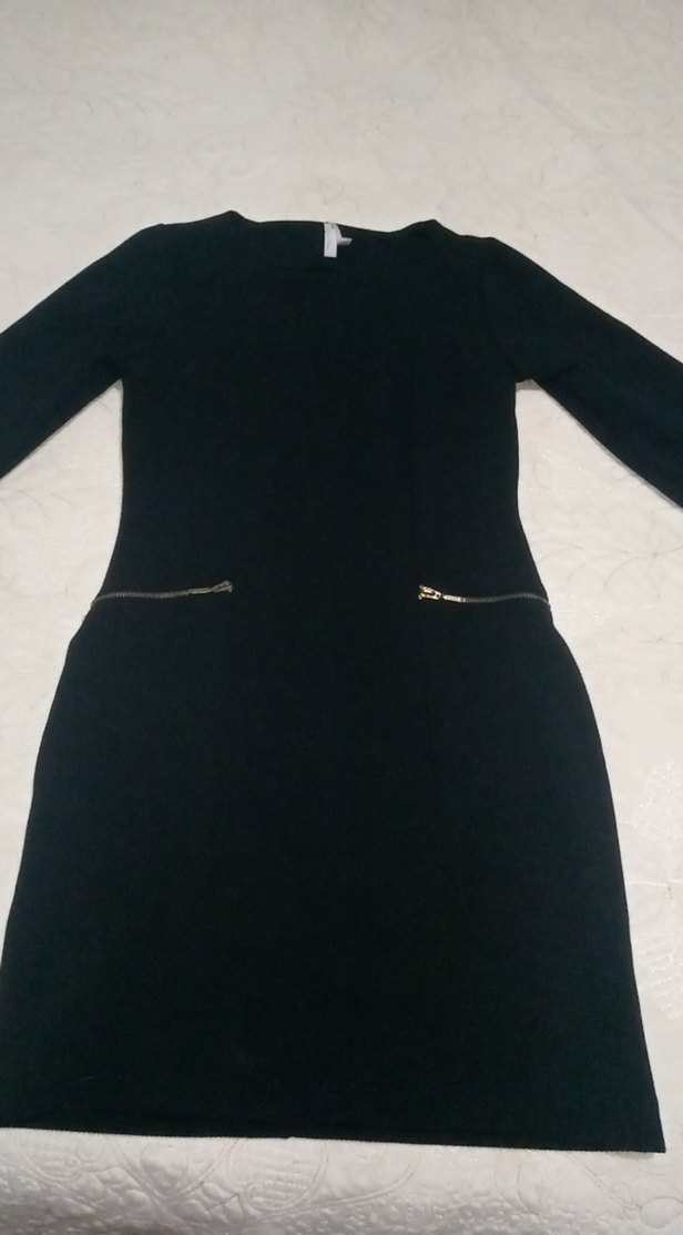 V yaka ve uzun kollu, vücuda oturan siyah midi kalem elbise, sentetik kumaştan. Belde fermuarlı detaylarla minimalist, gotik tarzda günlük kullanıma uygun.