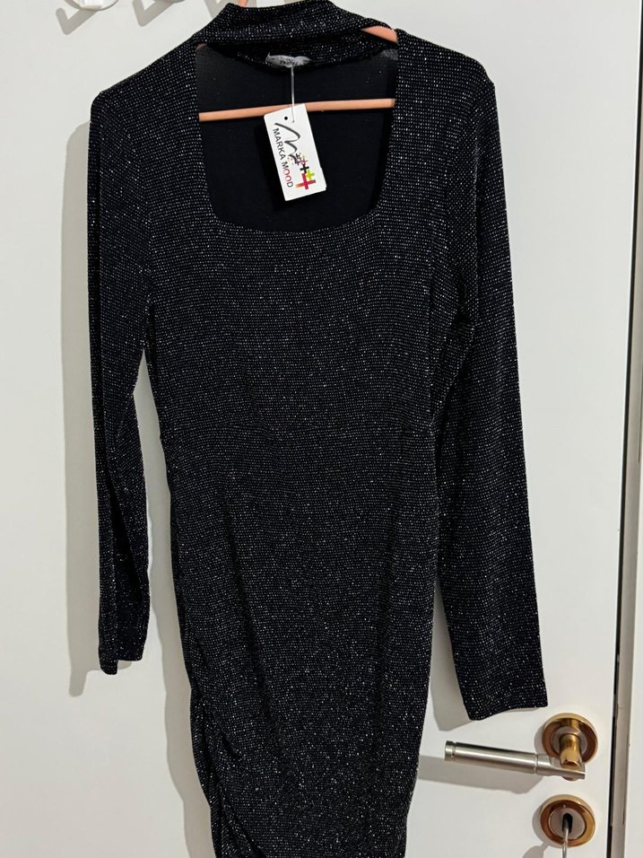 Siyah renk, V yaka ve uzun kollu, vücuda oturan midi triko elbise, rahat ve şık bir görünüm sunar. ✨