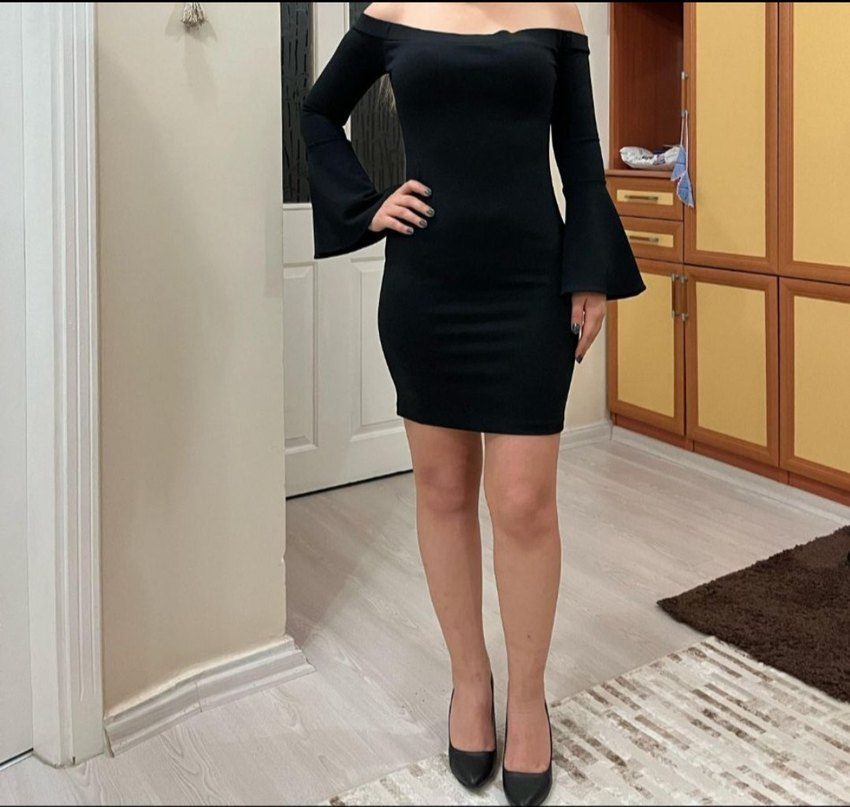 V yaka ve hafif genişleyen uzun kollara sahip, siyah, vücuda oturan mini elbise. Düz sentetik kumaştan, ofis için cesur ve şık bir görünüm sunar. Siyah S Beden kayık yaka elbise, yaka kısmındaki lastik kısmı biraz gevşemiş ama fotoğrafta görüldüğü gibi giyilebiliyor, biraz gevşeme mevcut. Ölçüler fotoğraflarda mevcuttur. Omuz açık, dar kesim, mini boy, kolları geniş paçalı. Esnek ve vücuda tam oturan kaliteli kumaş. Özel gün, davet, doğum günü, akşam yemeği veya parti için mükemmel seçim. Zarif, şık ve vücut hatları çok güzel gösteren bir model. 1 gün içinde kargoda Profilimdeki diğer abiye/elbise modellerine de göz atabilirsiniz #siyahaşkı #kadınmoda #zarifelbise #dolapindirim #elbisemodelleri #partielbisesi #şıkstil #mezuniyet #elbise #kadın #siyah #kısaelbise