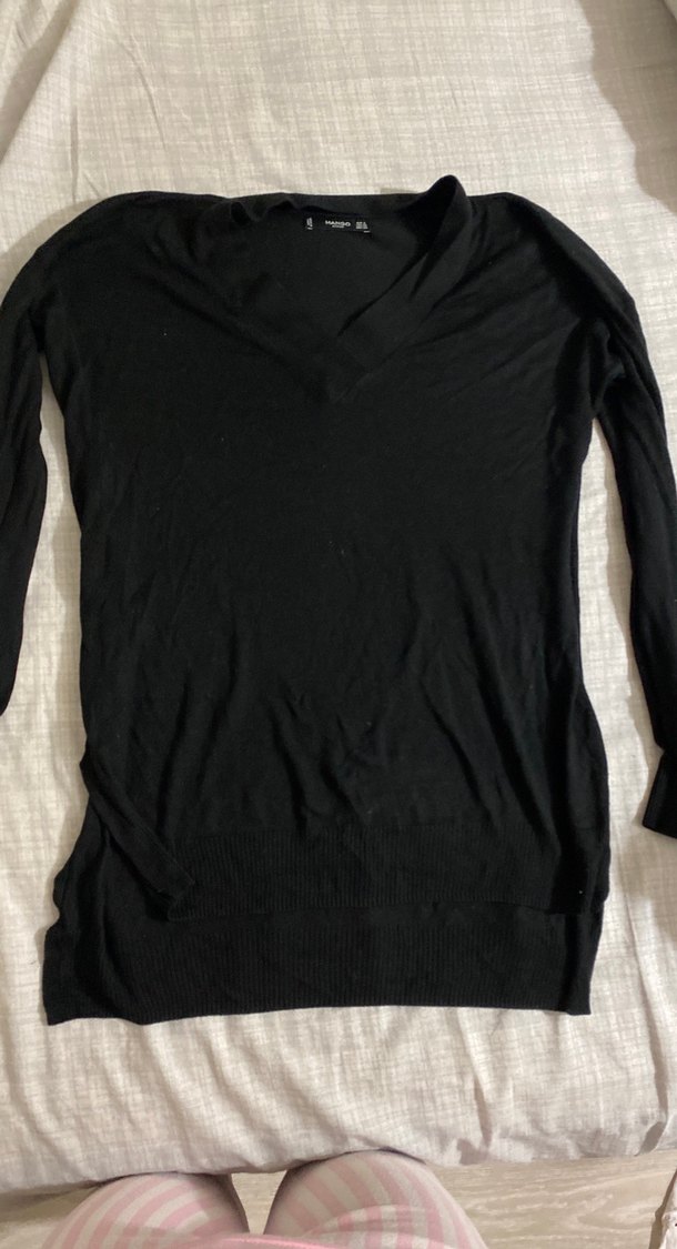 Siyah V Yaka Uzun Kollu Rahat Kesim Kadın Triko