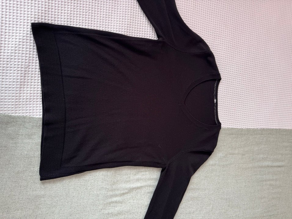 Siyah, V yaka ve uzun kollu mevsimlik, yumuşak ve dökümlü trikodur. Mevsim geçişlerinde idealdir. Günlük kullanıma uygun sade ve rahat bir modeldir. M bedendir rahat kalıptır M ve L bedenlere olur. Sadece birkaç kez giyildi herhangi bir deforme yoktur