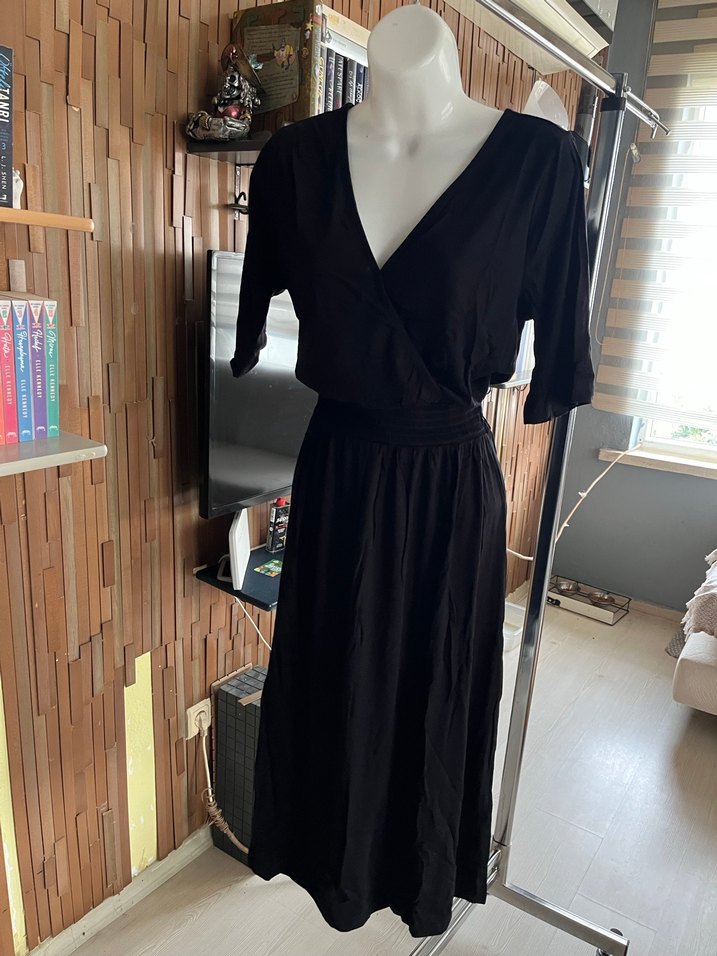 Siyah V Yaka Uzun Salaş Kadın Elbise
