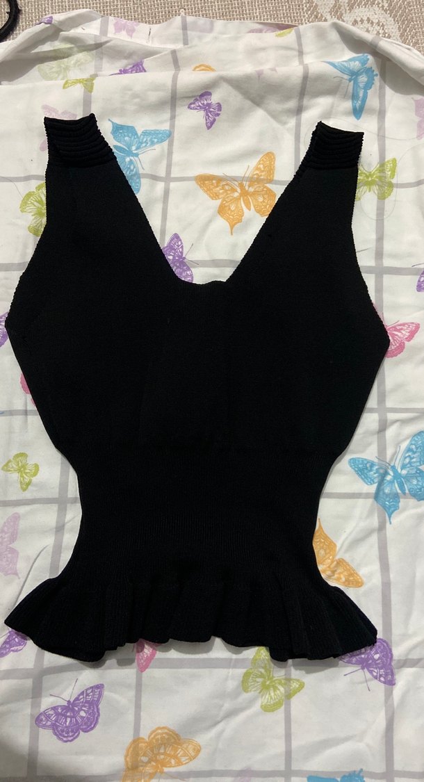 Siyah V Yakalı Belden Oturtmalı Kadın Crop