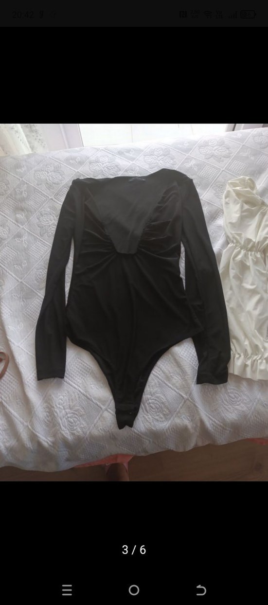 V yaka ve uzun kollu, drapeli detaylı, siyah ve vücuda oturan bu bluz, pürüzsüz sentetik kumaştan üretilmiştir. Minimalist goth tarzına uygundur.
