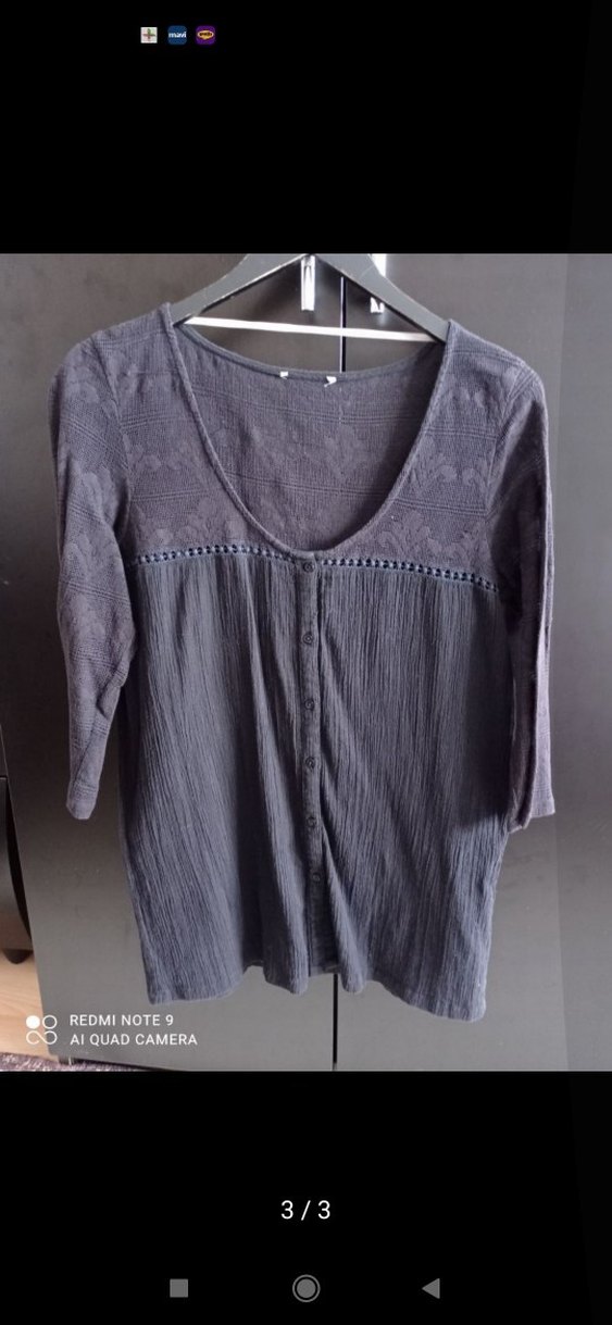 siyah renkli, V yakalı ve düğmeli kadın bluzudur. Pamuksu, hafif keten kumaştan, bol kesim ve dörtte üçkolludur, bohem tarzıyla günlük kullanıma uygundur.