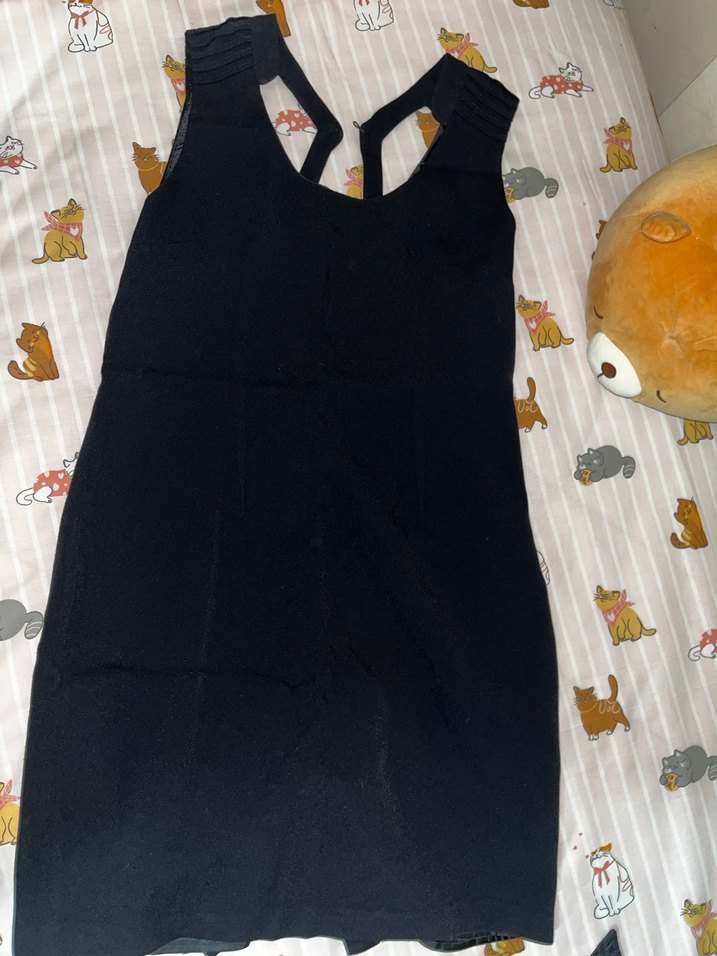Siyah renkli, V yakalı, örme dokulu, kolsuz ve midi boyda, vücuda oturan elbisedir.