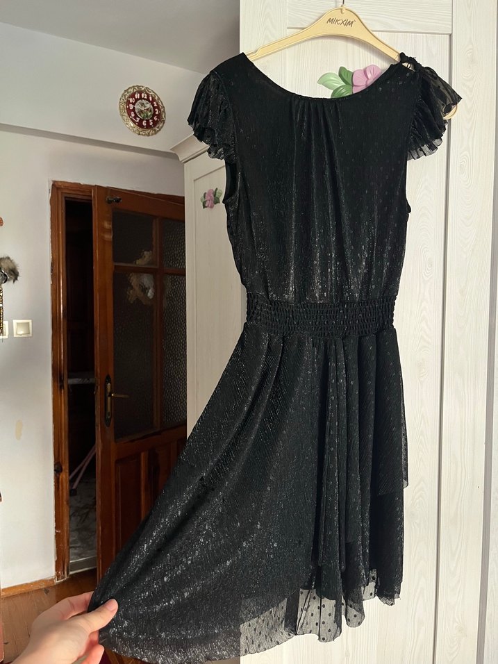 Siyah V Yakalı Fırfırlı Midi Elbise