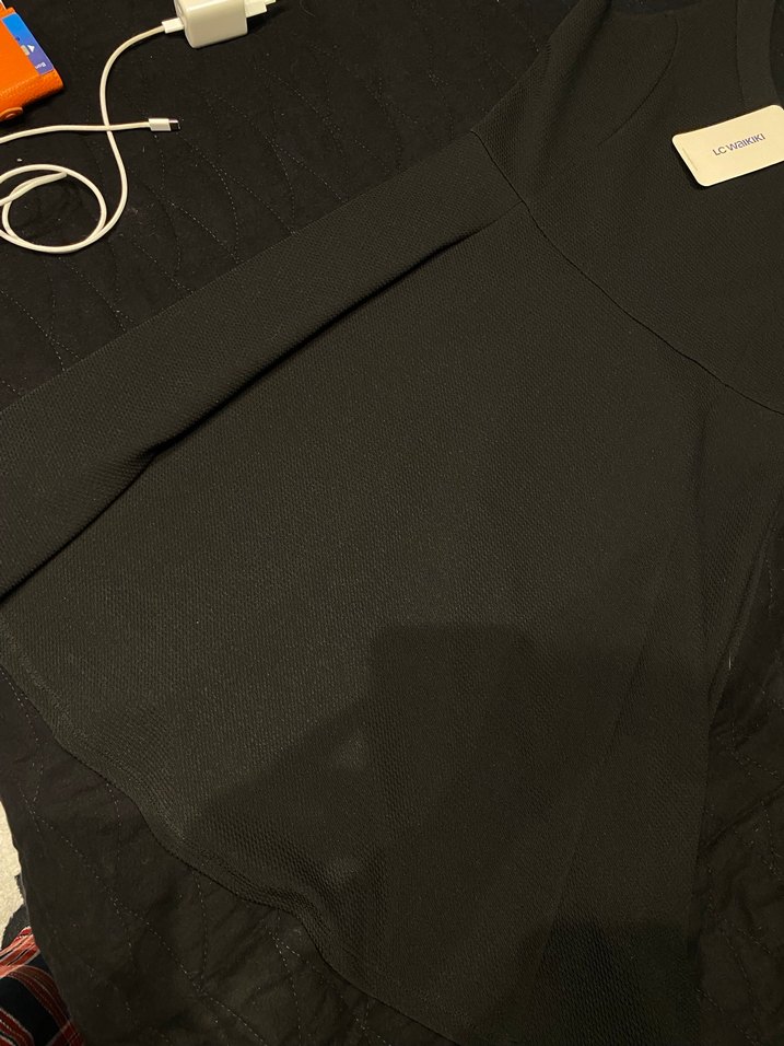 Siyah renkte, sentetik kumaştan yapılmış, bol kesim ve V yakalı hamile bluzu. Uzun kollu ve fermuarlı detaylı, midi boyda, günlük kullanıma uygun.