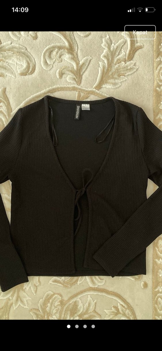 Uzun kollu, V yakalı ve bağcıklı siyah triko hırka. İnce dokuması ile rahat ve şık goth tarzını yansıtır.