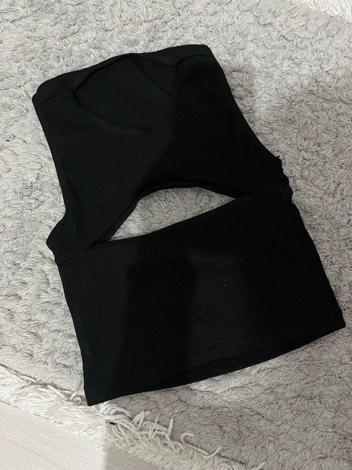 Siyah, V yakalı, kolsuz kadın atlet. Sentetik kumaştan üretilmiş, günlük kullanıma uygun, sade ve şık bir tasarım sunar.