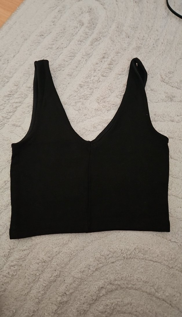 Siyah renkte, V yakalı ve kolsuz kadın atleti. Düz ve midi boyda, sentetik kumaştan yapılmış, fit kesimle günlük kullanıma uygun rahat bir sokak stili sunar.