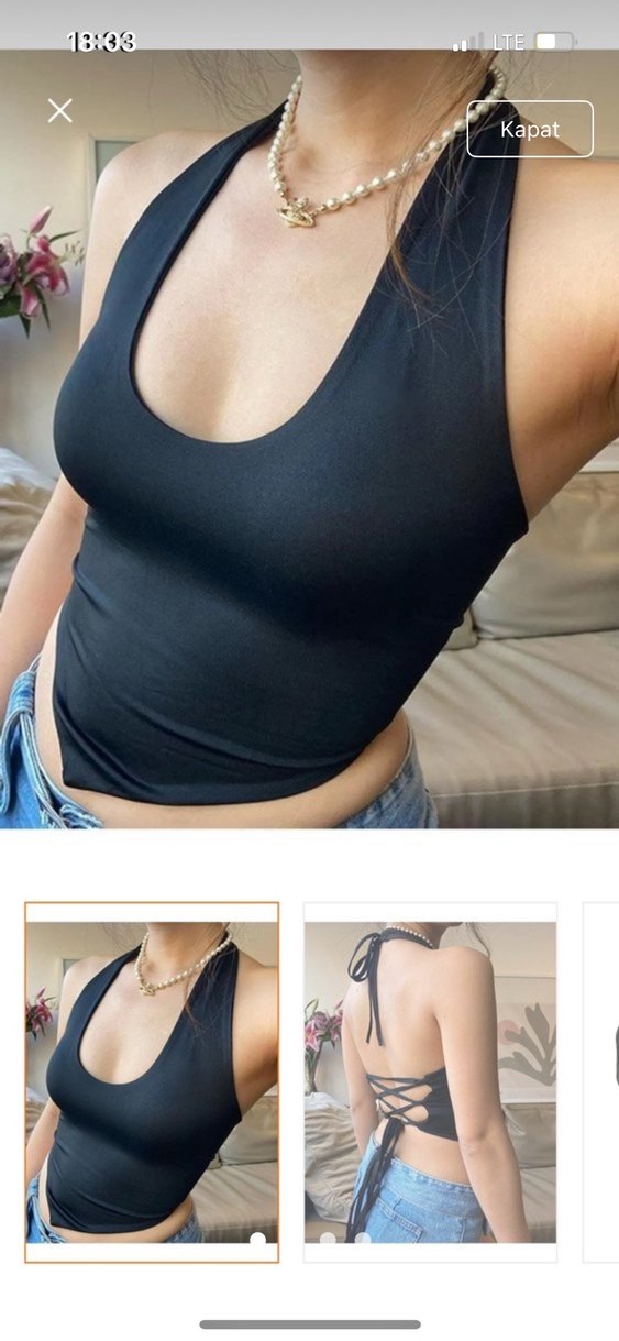 Siyah, V yakalı ve kolsuz bu crop top, ince sentetik kumaştan yapılmıştır. Cesur sokak stili için zahmetsiz şıklık sunar.